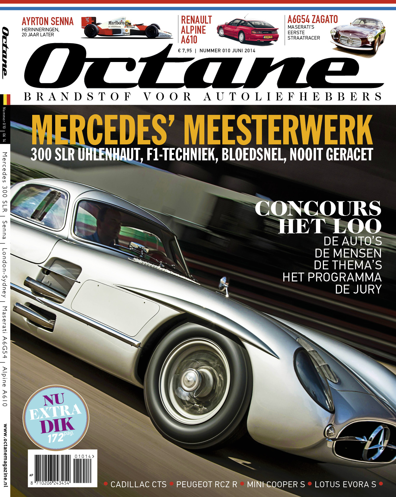 We zijn weer twee maanden verder en dus is er een nieuwe Octane klaar. Octane 010 deze keer, met op de cover de fantastische Uhlenhaut Coupé van Mercedes. Binnenin een grote special over het Concours d’Elegance Het Loo, maar ook verhalen over Alpine, Maserati en Ayrton Senna (een vertaling van mijn hand).