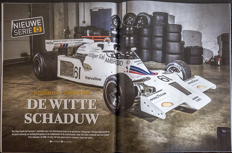 Het tweede was het begin van de serie Blootgelegd, die ik samen met fotograaf Maurice Volmeyer ga maken: acht pagina’s tot in detail over een interessante auto uit de geschiedenis van de Formule 1. We deden de aftrap met de Shadow DN8, de auto waarmee Alan Jones in 1977 de GP van Oostenrijk won. Deel 2 verschijnt binnenkort en gaat over de Alfa Romeo 179, de auto waarmee het groene klaverblaadje eind jaren zeventig terugkeerde in de Formule 1.