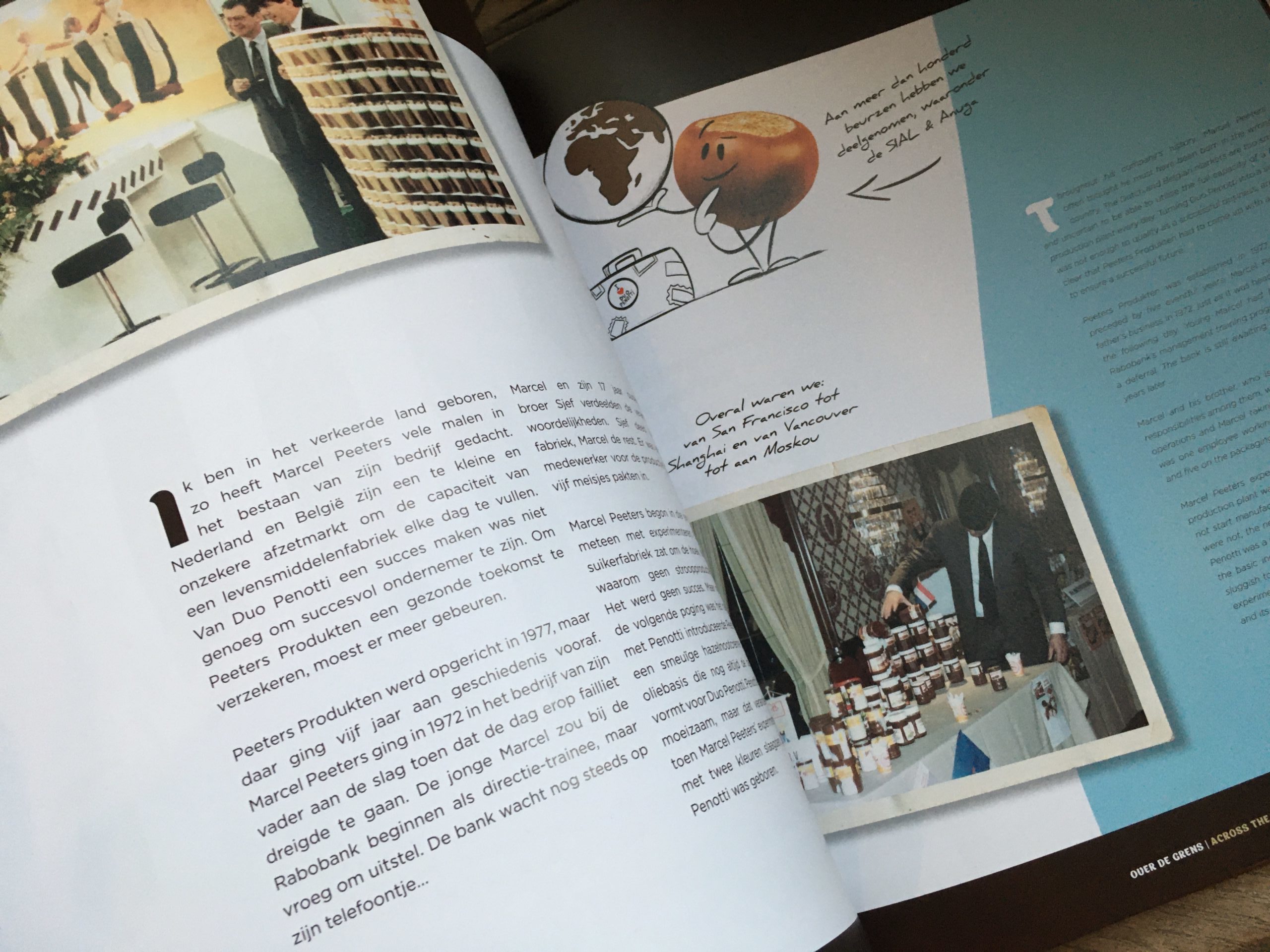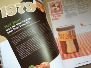 Ik kreeg de opdracht van het communicatiebureau Weber Shandwick, met wie ik samenwerk voor klanten zoals Avanade en Mazars. Deze keer kwamen ze met een heel speciale opdracht van hun klant Peeters Produkten, een kleine Roosendaalse zoetwarenproducent en het bedrijf achter de alombekende chocolade-hazelnootpasta Duo Penotti. Alleen al dát feit wist ik niet eens – en de rest van Nederland ook niet – en dat maakte de opdracht des te interessanter. Oprichter Marcel Peeters (ook de bedenker van Duo Penotti) wilde namelijk met een boek vieren dat Duo Penotti nu al 40 jaar op de ontbijttafel staat. Niet alleen in Nederland, maar inmiddels in 38 landen over de hele wereld. Het zou me mijn zomervakantie kosten, maar toch zei ik ja. Wanneer krijg je nu de kans om in de geschiedenis te duiken van een bescheiden familiebedrijf dat het al bijna een halve eeuw opneemt tegen de giganten in de levensmiddelenindustrie?